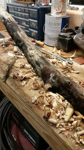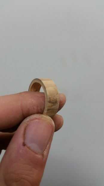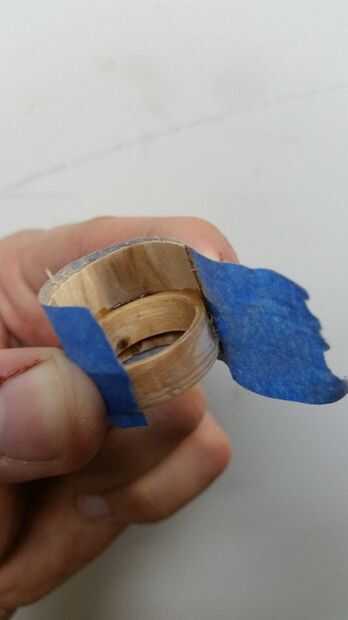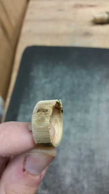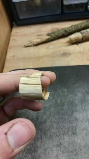 El trazador de líneas (núcleo interno apenas utilizado en los pasos anteriores) del anillo se hizo de la rama de abeto de douglas.