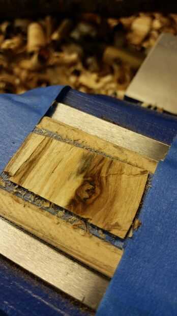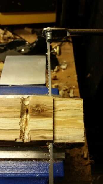 Una vez que la madera es plana, necesitará cortar una fina capa de la misma. No podrás hacer este espesor suficiente con un plano, porque la madera se agriete. Corto bajo de lado con una sierra de marquetería. hará cualquier Sierra.