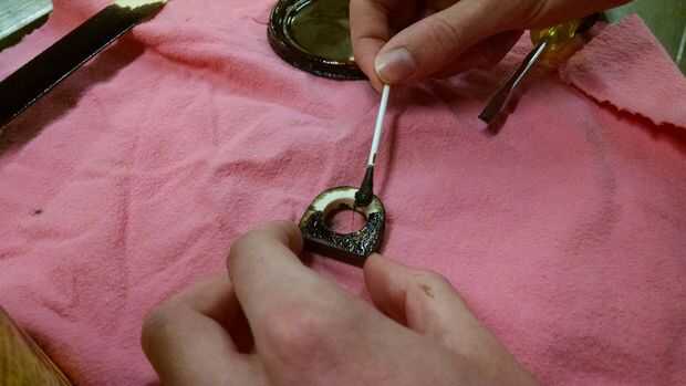 Utiliza tu color preferido de tinta para madera, se aplican unos abrigos con un q-Tip o un pincel. Deje el anillo de sentarse de noche por lo que puede fijar la mancha.