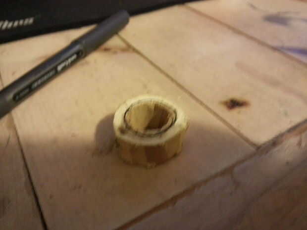 Corte adicional abajo I se quedó con nada más que un pequeño disco, antes de perforar un agujero en el centro y cincelar hacia fuera el centro de las líneas de lápiz externo con mi leatherman.