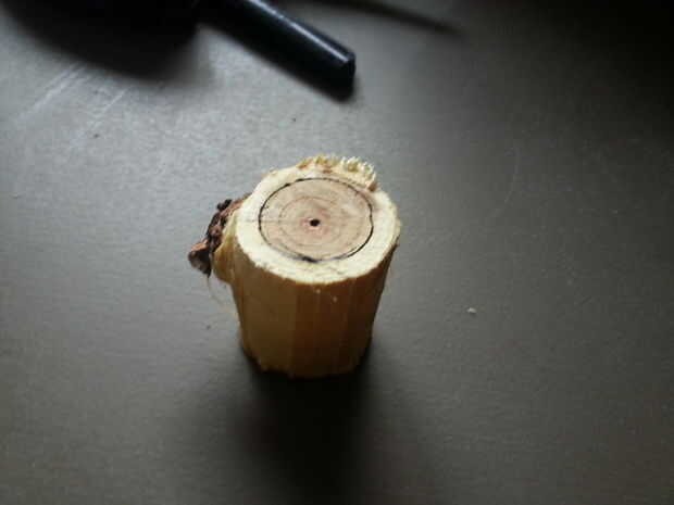Una vez que esto se hizo más corto rama hasta un tamaño más manejable, antes de marcar un esquema de anillo alrededor de él con una pluma en mi talla de anillo.