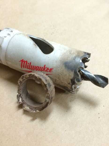 ADVERTENCIA: Después de perforar a su banda, no trate de llevarlo a cabo con los dedos, será muy caliente. Espere hasta que la sierra se refresca abajo, o utilice una cabeza plana Destornillador para empujar fuera de la sierra.