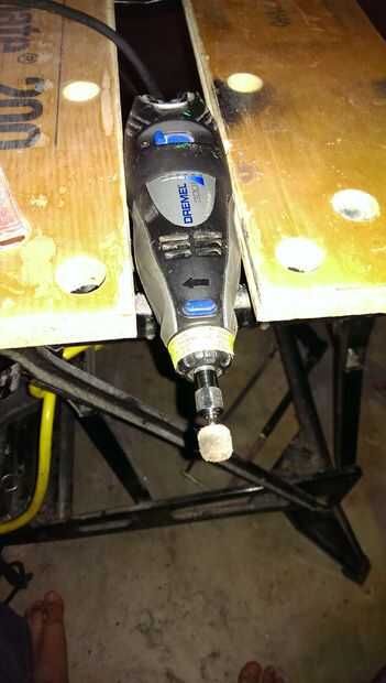 Sujete su dremel en su mordaza de mesa. Utilizar una cantidad abundante de compuesto para pulir y su anillo a un brillo.