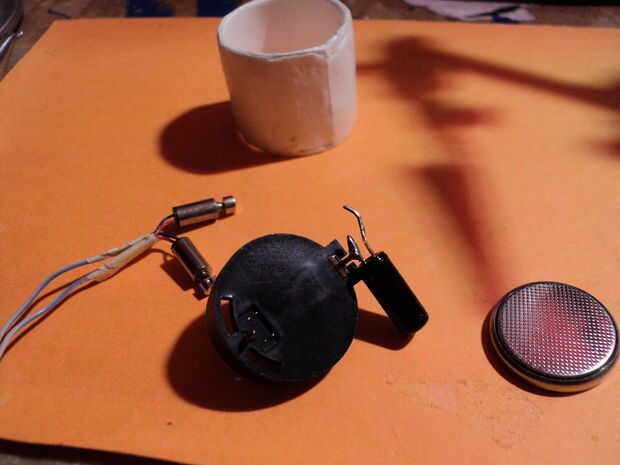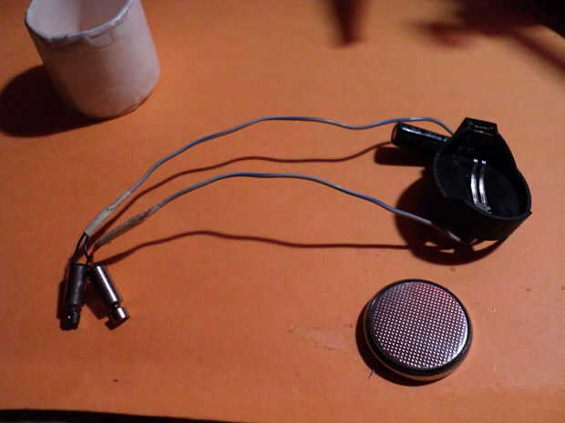 Los dos motores, cada uno con 3 voltios, serán cableados en paralelo con la batería de botón solo 3 voltios. No hay necesidad de preocuparse acerca de la polaridad a menos que seas stickler, que manera de girar los motores.
