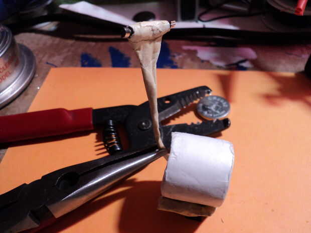 Alagodón encima de un papel para hacer una forma de la bola alrededor de los motores. Yo también aislado todo con cinta de enmascarar. También daría una superficie se puede pintar el objeto terminado.