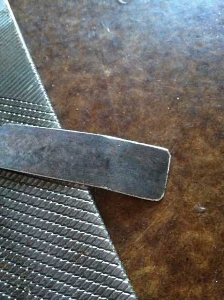 Presentar hacia abajo los bordes en cada esquina, trabajando el archivo en una diagonal. No tengo un archivo de lujo. es realmente un archivo de herradores, dado a mi cuando trabajaba como carpintero. cualquier archivo metálico simple va a hacer bien.