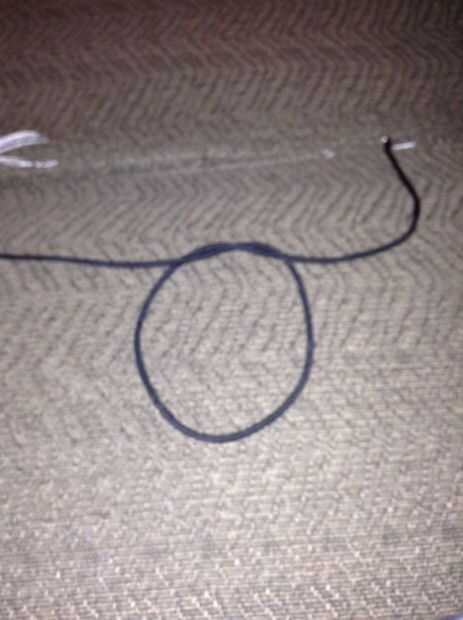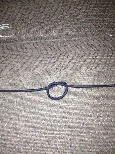 Tie an over hand knot. Apriete hasta que hay un lazo de pulgadas.