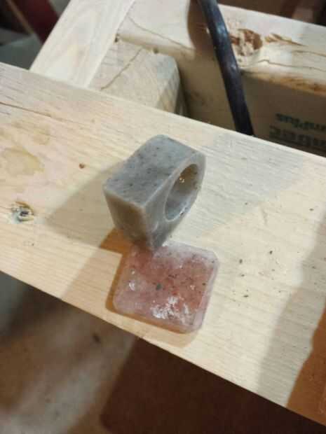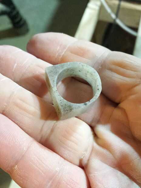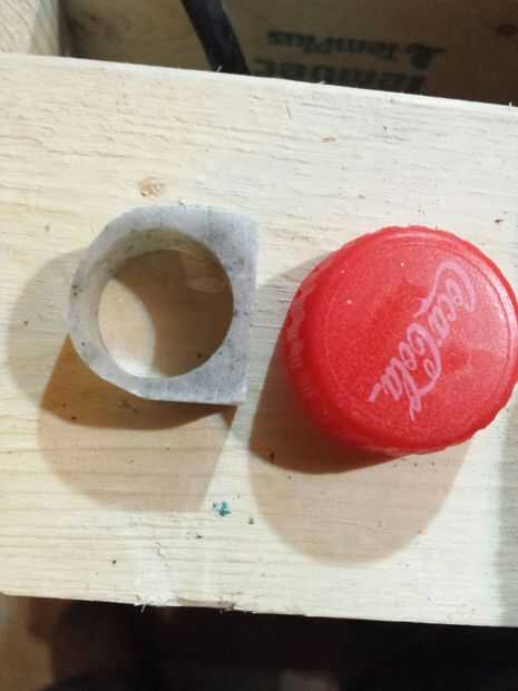 Seguir la rutina / forma el anillo hasta que estés contento con la forma. Tengo el acabado del anillo junto a una tapa de la botella de coca-cola de plástico para la comparación de tamaño. Usted puede seguir pulir el anillo de piedra con discos lapidarias más finos para conseguir un alto brillo o el anillo de desgaste como es. Se trata de un único anillo y estoy seguro que impresionará a tus amigos.