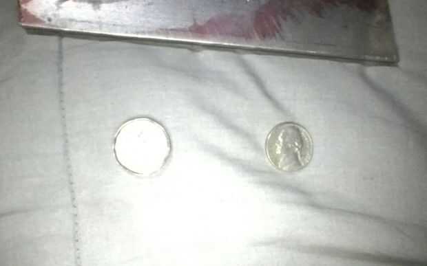 Aquí es mía después de diez minutos de golpeando su del tamaño de un centavo.