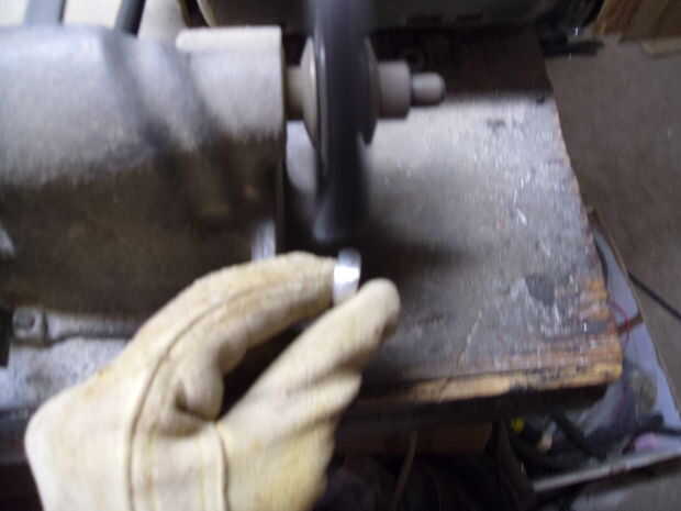 Usar la amoladora para el anillo de forma medida que avanza. (Recuerde paciencia o seguramente te te equivocas) Una vez tienen su forma, llevarlo a la rueda de alambre pero ir ligeramente o el alambre hace los hoyos que son difíciles de pulir a cabo.