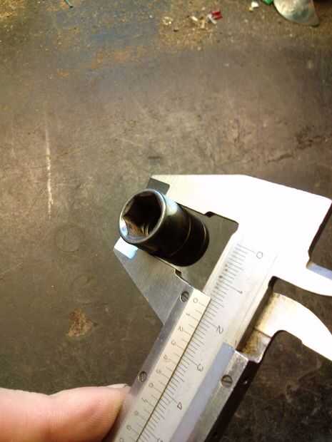 Entonces usted tiene que encontrar un tubo de metal que encajan las medidas. Después de mucho! de medir cualquier cosa de metal redondo que tenía por ahí, encontré que una toma para ajustar los bulones tiene un ajuste perfecto.