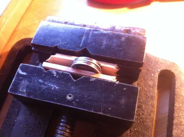 Ahora, sujete el anillo envuelto en un tornillo de banco con algún acolchado protector para no rayarlo y corte las puntas feas.