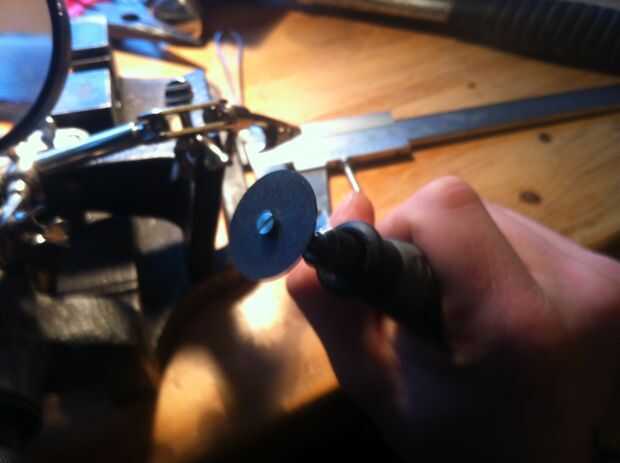 Utilicé un disco de corte dremel, la thinest que pude encontrar. Una sierra joyeros sería mejor pero otra vez, el presupuesto y la accesibilidad.