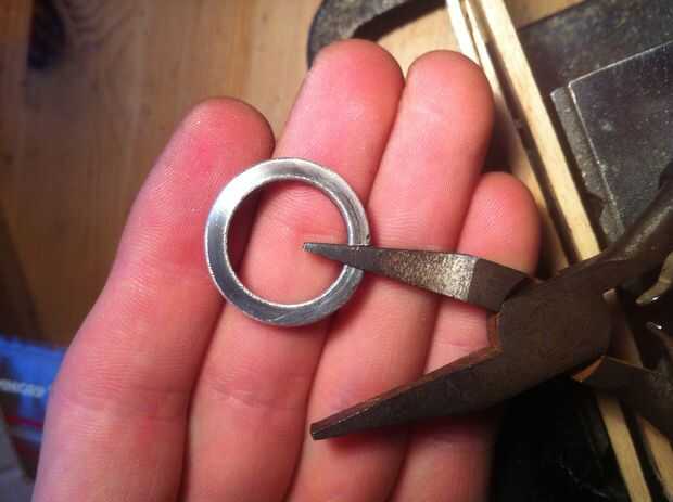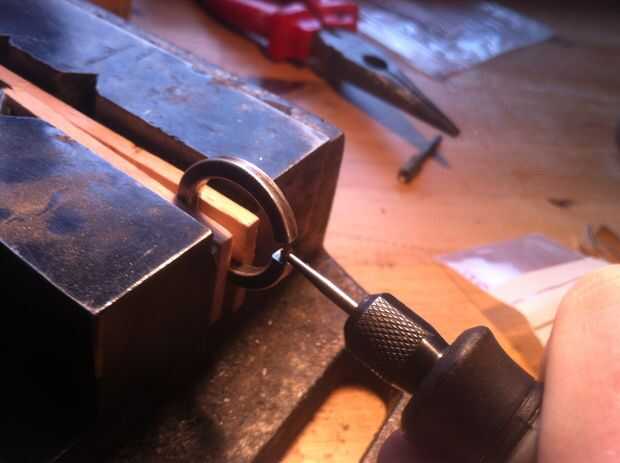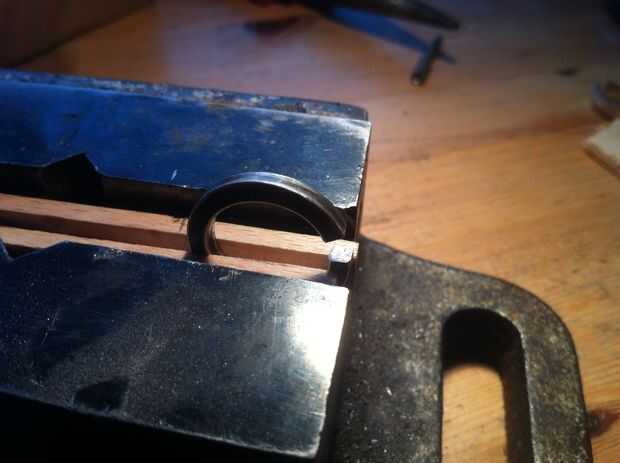 Luego de vuelta en el tornillo de banco y con mucho cuidado cortados pequeños asientos de la piedra en cada superficie. Corte el asiento aproximadamente medio milímetro en la parte superior y recto en el centro. Te recomiendo intentarlo hacia fuera en las sobras en primer lugar, a la práctica, puede ser un poco complicado. Es importante que usted corte recto, de lo contrario la piedra será en ángulo y mirar rara.