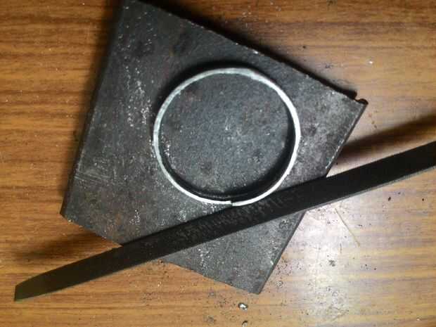 Ahora frote el anillo soldado para quitar superficie áspera y darle una forma agradable.