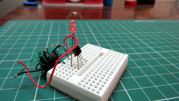 8. la soldadura de la resistencia de 1 k a la base del 2N2222