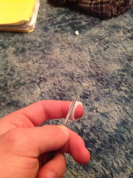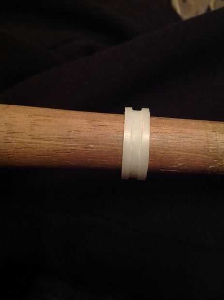 Puede utilizar una Dremel o una navaja de bolsillo para este paso, pero he encontrado que una lima de metal había trabajado mejor para mí. Presentar cualquier ranura de forma que desee en el ring. Este paso es bastante simple, pero usted debe recordar que la ranura recta y en el centro del ring, a menos que quieras compensar por una razón. No presentar todo el camino a través de la PVC o hacer las paredes demasiado finas o va a ser muy frágil.