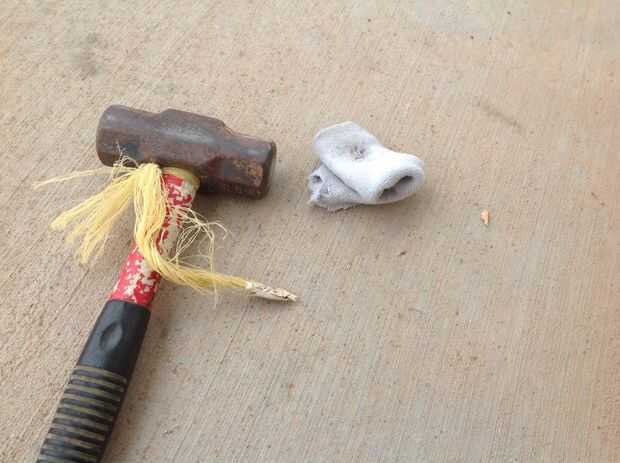 Para triturar la piedra quieres, envuélvalo en un un viejo calcetín o un paño y martillo lejos. No martillo demasiado o sólo tendrás un polvo y no hay variedad en tamaño. El polvo es bueno para rellenar los agujeros. pero me gusta usar sobre todo trozos medianos.