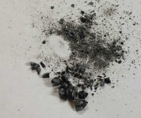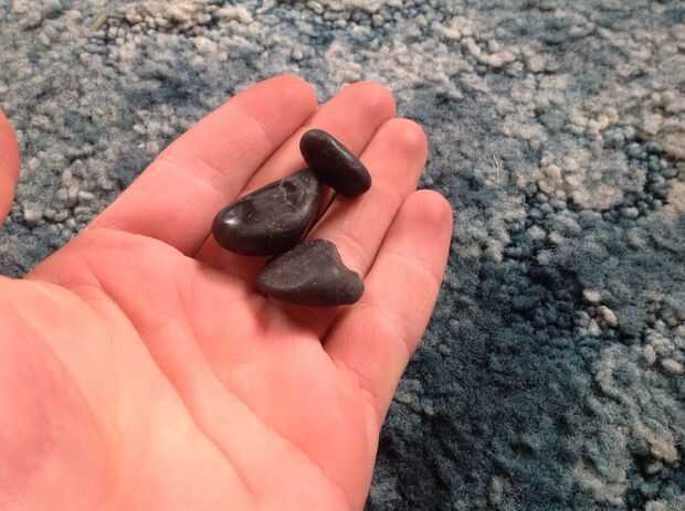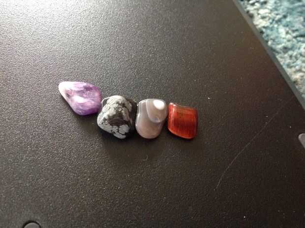 Quería una piedra oscura en mi anillo. Miré a unas piedras muy bonitas, pero no guardó su color muy bien después de que se machaquen usé un pedazo negro de grava. Puede utilizar cualquier roca que desee, pero rocas vidriosas pueden llegar a ser mucho más ligero después de que se machaquen y embutidos.