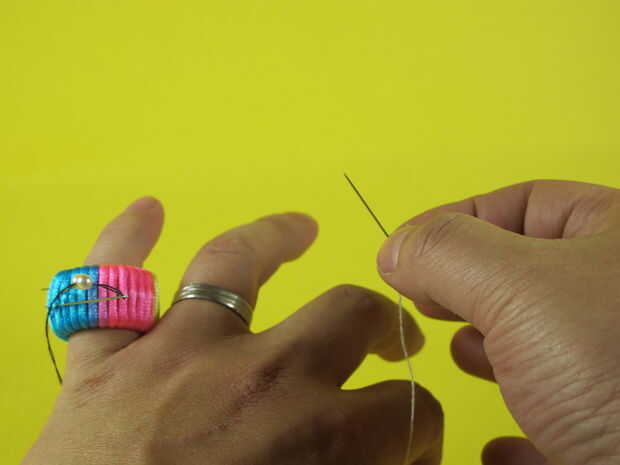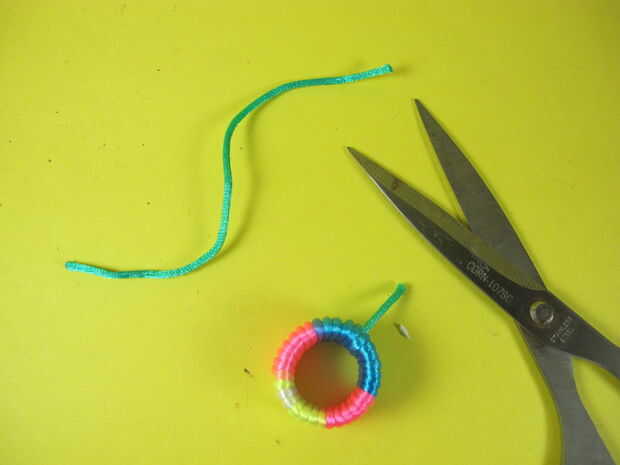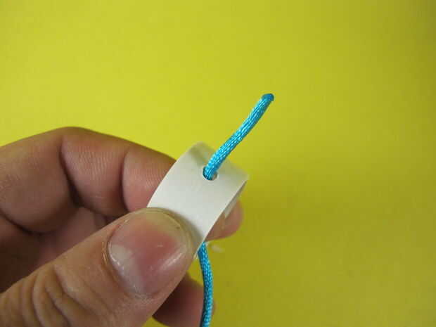 Para terminar el envase, dejar que la cola por el mismo agujero y oculta la cola bajo la cuerda.