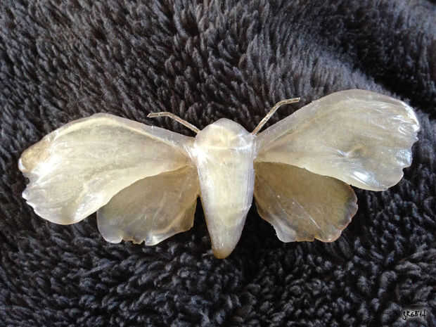 Haz tu arcilla horno hornear bien en tus manos para que sea más fácil de utilizar, comienza con el cuerpo de la polilla y luego las alas envolviendo los alambres. He añadido ondas de movimiento en las alas para que parezcan más realistas, luego con la punta de los dedos o la parte trasera de tu brocha, soflty esculpe la arcilla para darle a una especie de patrón de las venas. He dejado la cabeza de la polilla suave y añadido un pelaje como patrón en su cuerpo mediante la adición de pequeños trazos con mis uñas en la arcilla.