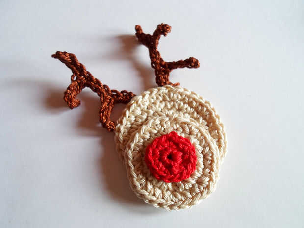 Por último, cose los cuernos en la parte superior del círculo grande. Intente mantener la punta de los cuernos detrás del círculo.
