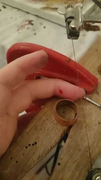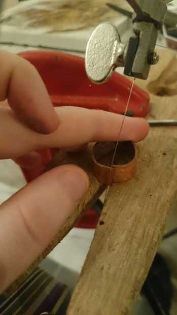 Utilizando las pinzas para sujetar un extremo, doble suavemente el metal alrededor para cumplir con los extremos. Los extremos tendrán que ser perfectamente junto con sin espacios, que tal vez necesite verlo directamente (ver fotos). Tenga cuidado sin embargo, como puede ver en una de las fotos, una vez que estés a través del anillo la sierra proyectará hacia adelante y los vieron las cuchillas están afiladas como tonto!