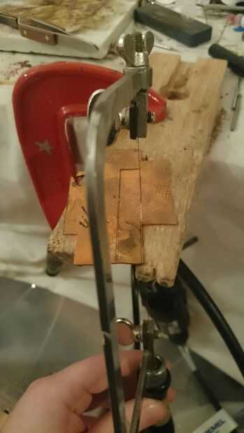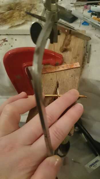 Vio la forma de cobre y corte el alambre de plata unos 5mm más largo que el cobre.