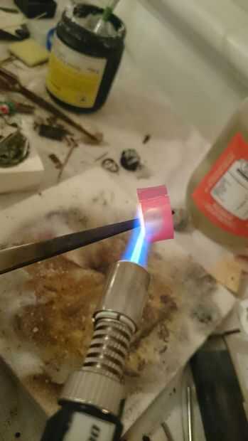 Coloque el anillo sobre el ladrillo de soldadura o sujetarla con sus pinzas y empezar a calentar el metal con su antorcha.