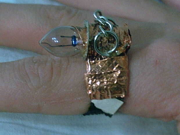 Se trata de un anillo de steampunk que hice de la bombilla de una linterna, cinta de cobre, un viejo llavero y una correa de una lonchera vieja. La luz no funciona, simplemente dejando que conoces. Estoy haciendo un disfraz de Halloween con temática steampunk y esto es lo primero que hice. Podría publicar actualizaciones en este Instructable para mostrar cuán lejos he ido en él :D Personalmente, creo que se vería mejor con un guante de cuero en.