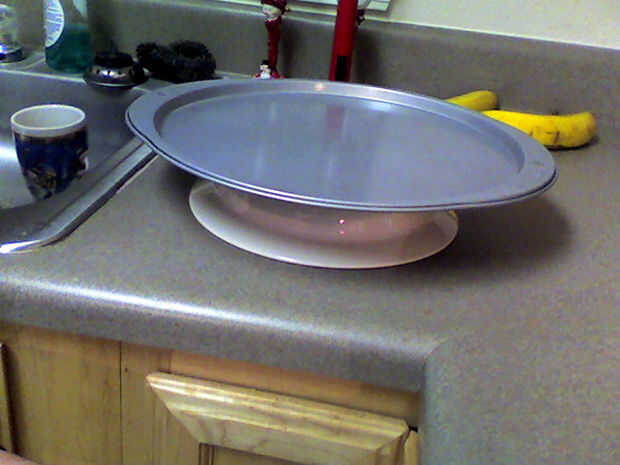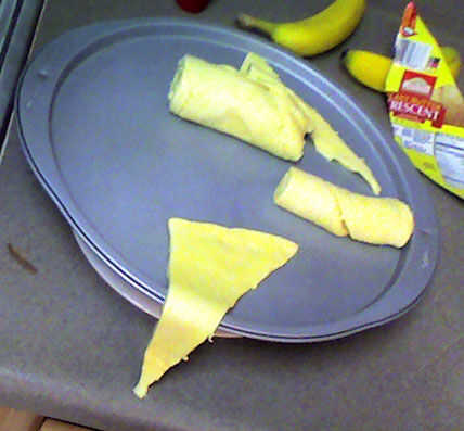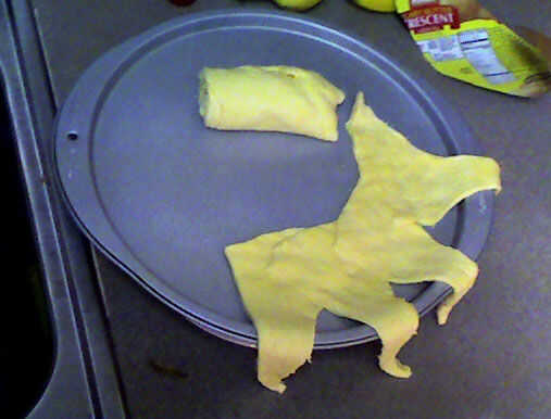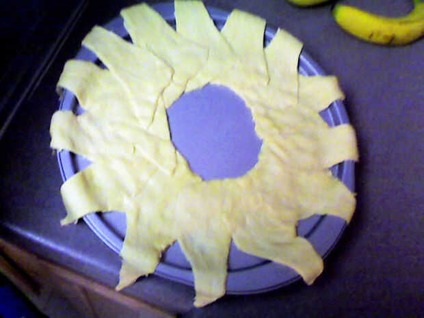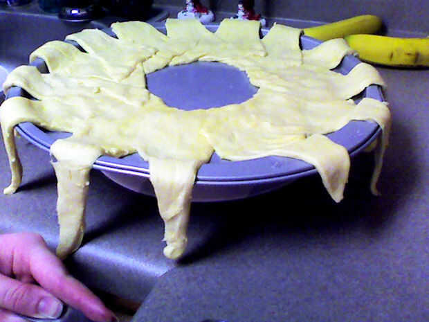 Adelante y precalentar el horno a que temperatura los croissants se suponen para cocinar en. Mientras se cocina la carne molida tiene un montón de tiempo para montar la parte del anillo del anillo del Taco, ya que carne molida muy baby-sits sí mismo. Coloque su bandeja redonda encima de la taza. Esto va a permitir la proyección (proyección de lo que? pregunte. Ser paciente!) Rociar la sartén con aerosol de cocina. Dar una capa bien gruesa. Ahora abrir para empezar con un tubo de croissants y Desenrolle y separarlos. Coloque el extremo ancho del croissant aproximadamente tres pulgadas desde el borde de la hoja de cookie, que permite el borde fino colgar del lado (aquí es su proyección). Continuar de esta manera todo el camino alrededor de la olla, con el resto de los croissants en caso necesario. Se superponen la masa que hay ningunos puntos abiertos, empujando juntos según sea necesario. Terminará con un círculo en medio de la Panamericana donde no hay ninguna masa. Es el anillo!