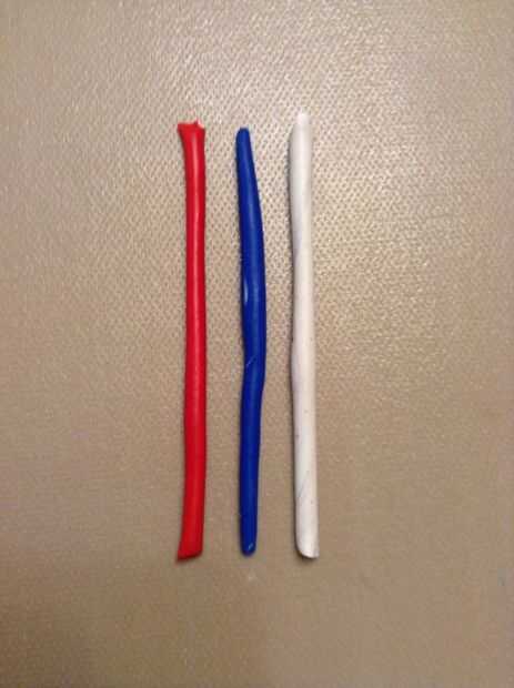 Rodillo de tres líneas de la arcilla polimérica en este caso elegí colores americano Asegúrese de que no son de grandes porque cada filamento se agrega para arriba
