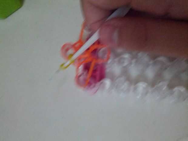 Paso 1: Lo que se necesita Se necesita:1 - telar12 - bandas1 - clip s1 - ganchoPaso 2: Colocar las bandas Comienzo desde el punto medio en el lugar que venda remite.Luego hacer lo mismo una vez más.Paso 3: Colocar las bandas Luego de la tercer punto