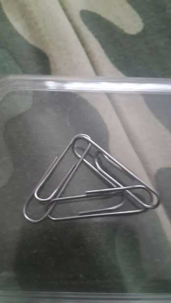 Ahora lo que tienes que hacer es tomar el clip en la parte delantera y un enlace con el que está en la parte posterior. Un poco como lo que hacer al principio. solo lugar como lo que tengo en los primeros planos y tirar entonces... VUALÀ!!!!!! SU TRING A (triangular anillo... Acabo de hacer eso para arriba!) DECLARO QUE ESTE INVENTO SE LLAMA... TRING!!!!!!