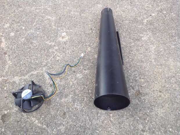 Me aseguré que el ventilador de la PC quede alineado con el extremo más ancho del cono.