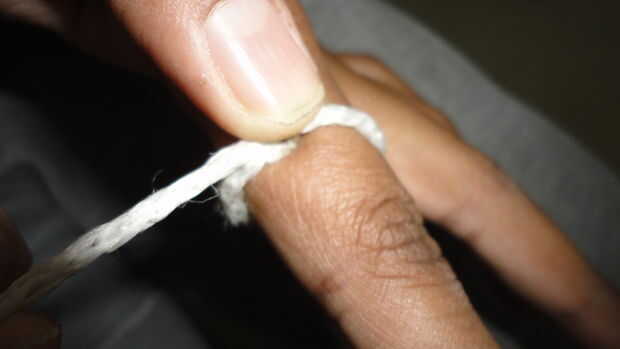 Primero tome la cuerda y medir la anchura de su dedo (circunferencia) por el bucle de la cuerda alrededor de tu dedo y luego la longitud de la marca con un marcador...