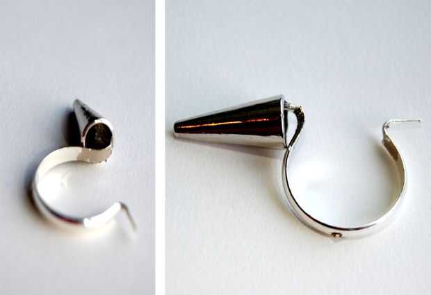 este anillo crea la ilusión de un punto pasando el dedo, aunque el anillo es tan ligero que usted probablemente no incluso sentirlo. ** Este proyecto no utiliza puntas reales, son simplemente cono Casquillas y cascarillas! Mucho más fácil de encontrar que puntos reales.