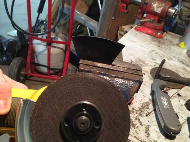 En primer lugar, aseguró mi fragmento de registro en un tornillo de banco. Los registros son un poco frágiles, así que cuidado de no apretar demasiado. Usé una amoladora para cortar mi pieza que incluía un borde. El polvo que resulta de esto puede ser peligroso para respirar, así que ten cuidado. Utilicé un papel de lija fina para suavizar el borde áspero.