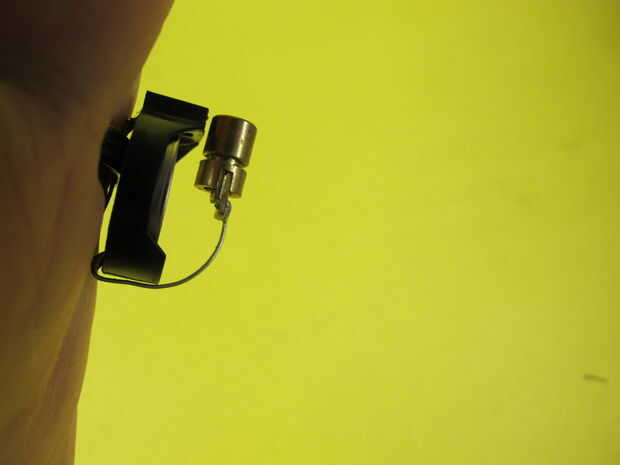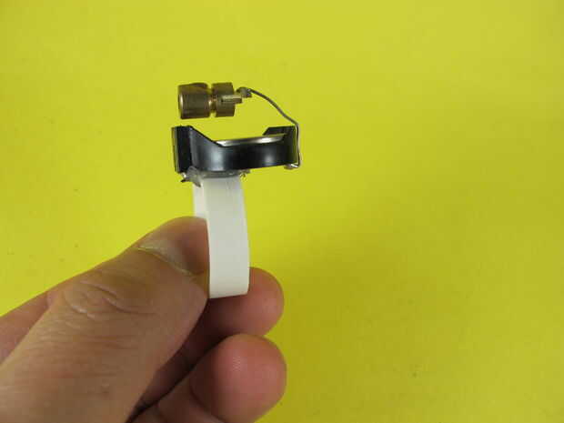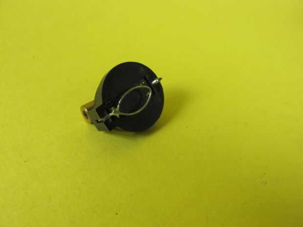 al pulsar el láser LED, el caso cobre del LED va a tocar el componente metal (positivo) del soporte de la batería.