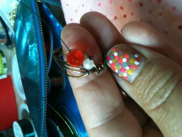 Escoger a otra cadena de bolas en y garantizar tejiendo a través del anillo base
