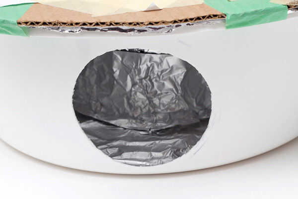 Mantenga la parte inferior de un reflector de Alien Bee estándar contra el lado de la cuenca y el diámetro de la marca. Corte un agujero utilizando una cortadora o un cuchillo caliente. Asegúrese de que el agujero es lo suficientemente lejos del borde de la cuenca por lo que la abeja Alien puede acoplarse. Hacer un agujero lo suficientemente grande como para la lente de su cámara en la parte inferior del envase de helado y un agujero correspondiente en el centro del lavabo.