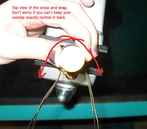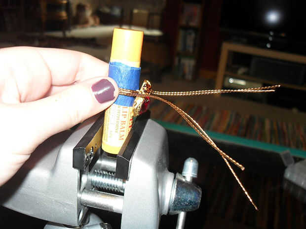 Envuelva los 2 pares de alambre alrededor de la curva de chapstick, cruzando en la espalda.