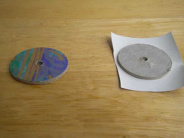 Cubrir tubo y círculos w/papel. Pegamento en su lugar. Haga agujeros a través de papel donde los agujeros fueron perforado w/un lápiz afilado.