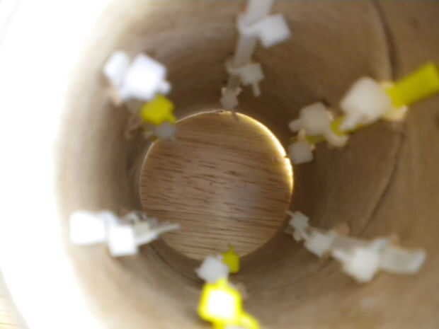 cuando mis estudiantes terminan sus proyectos de arte, que a veces necesitan algo más que hacer. Una de las cosas que les he enseñado es cómo hacer una trenza redonda con una rueda de cartón y el hilo.Tengo este enorme cubo de hilado. Deseo que tenía