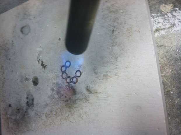 Esto es donde usted conseguirá mucha práctica de soldadura de joyería. La plantilla de círculo y el archivo pdf, encontrar el diámetro necesario para soldar con éxito 8 anillos en cada nivel. Cuando el diámetro se encuentra, dibujar el círculo en la almohadilla de soldadura con un lápiz.