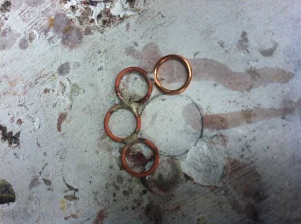 Los dos anillos se oxida en este punto, hasta introducirlo en el decapado ácido y agua antes de agregar el otro anillo. Repita la conserva en vinagre + agua de proceso para cada anillo de soldado hasta el nivel.