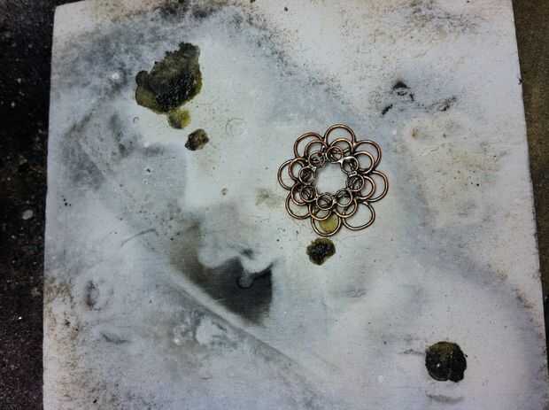 Una vez que los dos niveles más pequeño tienen plomo de la soldadura en aquellos previamente soldadas áreas, apilar todos los tres niveles juntos. Utilizar el soplete para calentar la pieza, mueva la antorcha en forma circular para distribuir uniformemente el calor. Usted sabrá cuando esté listo cuando veas los dos niveles más pequeños 'fregadero'.