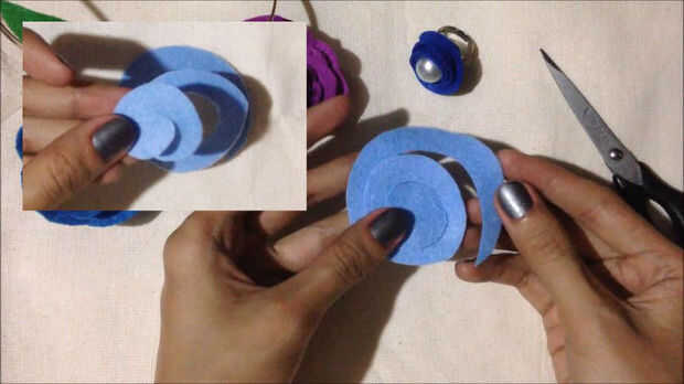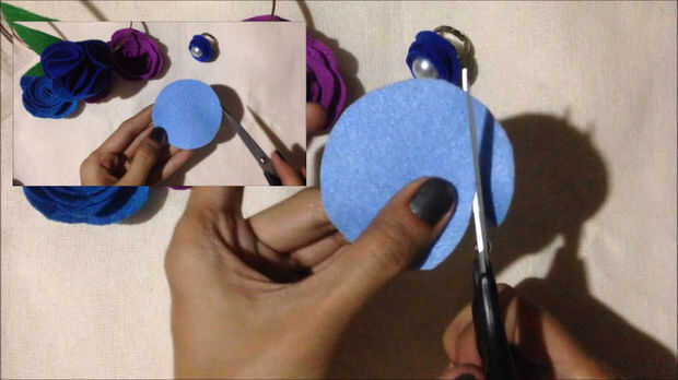 Paso 1: Qué necesidad de U n hilo de la agujaFieltro tela (color propio deseo)Paso 2: Paso 1 Corte la tela en forma redonda5piecesTamaño de la flor depende de uPaso 3: Paso 2 Dobla cada pétalo en medio doblez n vuelto a triánguloPaso 4: Paso 3 Coser