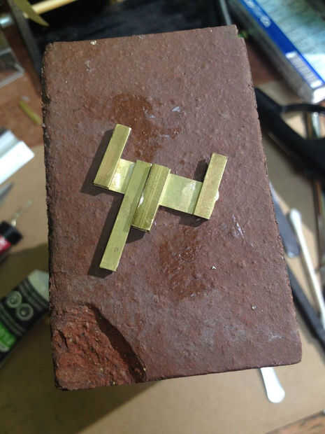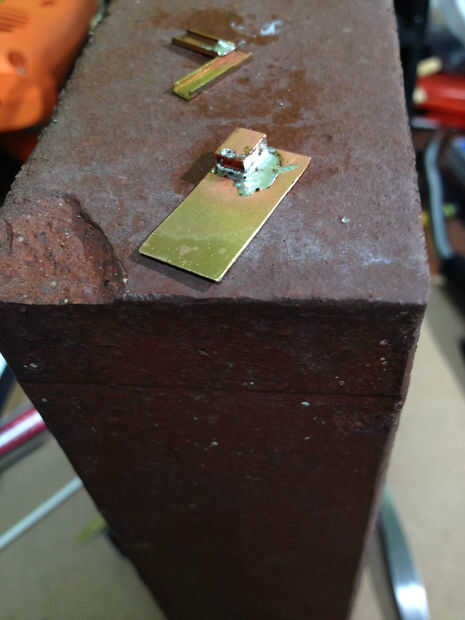 Este paso ser altamente simplificado con un soplete de butano adecuada, pero puede hacerse (y fue hecho por mi) con un 40w o por encima de la soldadura de hierro. El hierro tiene que tocar tanto del metal a ser soldado como sea posible y tendrá que mantenerse en su lugar durante varios segundos antes de que el metal está suficientemente caliente para derretir la soldadura. Siempre derrita la soldadura con los componentes de metal y no el soldador. Para mantener los componentes de metal en lugar después de retirar el soldador, mantener el metal en su lugar con unas pinzas o un soldador de ayuda hasta que la soldadura se enfríe.