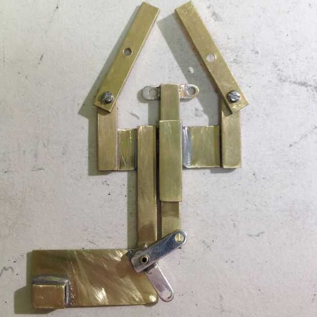 Montar las piezas móviles en el orden en las imágenes: en primer lugar, deslice en el pistón que se acopla a la garra. Entonces, agregado la biela de la palanca reciprocante y los brazos de la pinza. Pegar los tornillos y dejar secar. Luego los espaciadores de 2 agujeros que coloque los brazos de la pinza en el componente de agarre. Pegar los tornillos y dejar secar. Luego, introducir el pistón en su cigüeñal en el mecanismo de la palanca reciprocante y coloque a los espaciadores de 2 orificios que actúan como conectores para la palanca reciprocante. Pegar los tornillos y dejar secar.